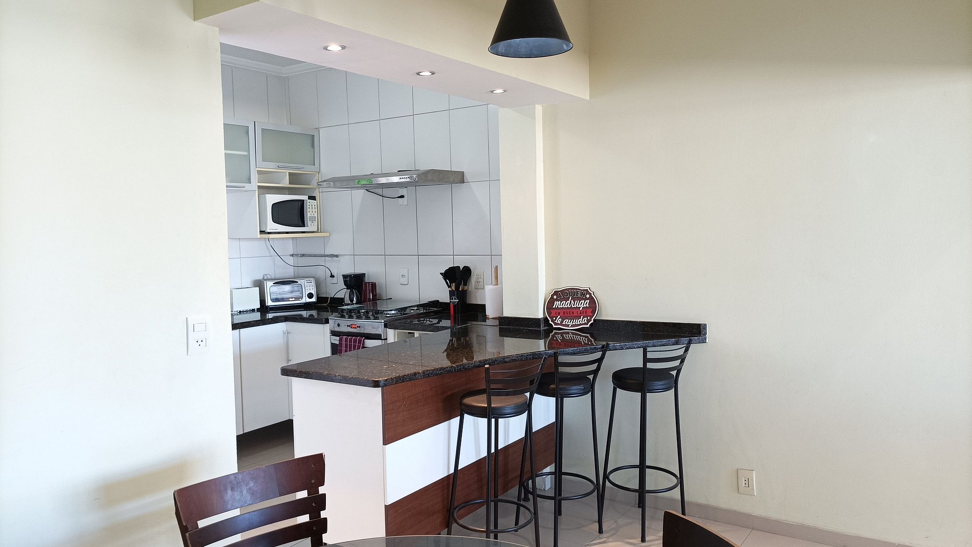 Este espaçoso apartamento oferece uma atmosfera acolhedora, com uma cozinha completa para refeições caseiras. Você encontrará tudo o que precisa, desde utensílios de cozinha até eletrodomésticos. Roupa de cama e banho são fornecidas, garantindo conforto durante sua estadia. Desfrute de entretenimento com internet e TV Smart, e chuveiros elétricos, proporcionando comodidade e praticidade.